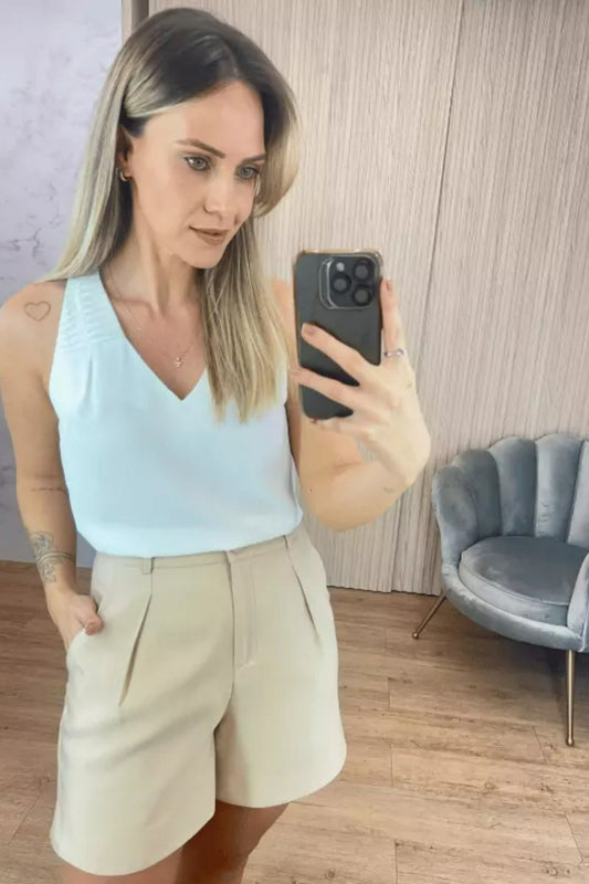 HALF MOON VISCOSE BLOUSE & STRAIGHT PLEATED PANTS SET